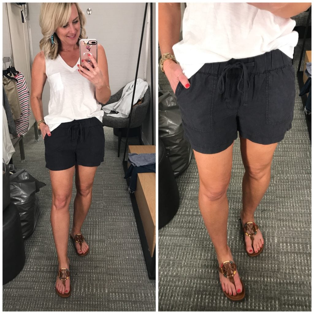 It may be a chilly Spring, but Summer is coming…and if you’re in the South with me, you know shorts are essential. These linen shorts have a wide elastic waist with drawstring and deep pockets…and pretty much perfect. These are the shorts you buy in every color, and wear every weekend. I paired them with my fave pocket tank.