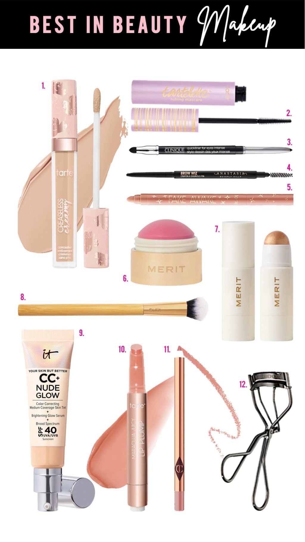 7. Merit Highlighter Balm // 8. tarte angled concealer brush