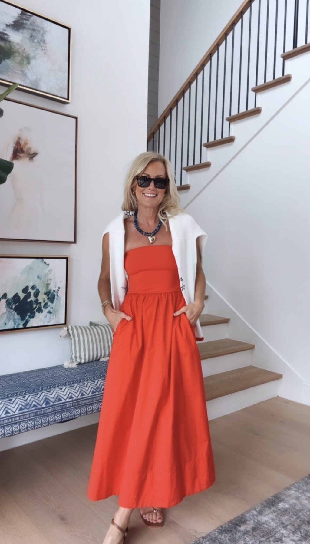 Dress (XS) | Sweater (Small) | Sunglasses | Necklace | Sandals