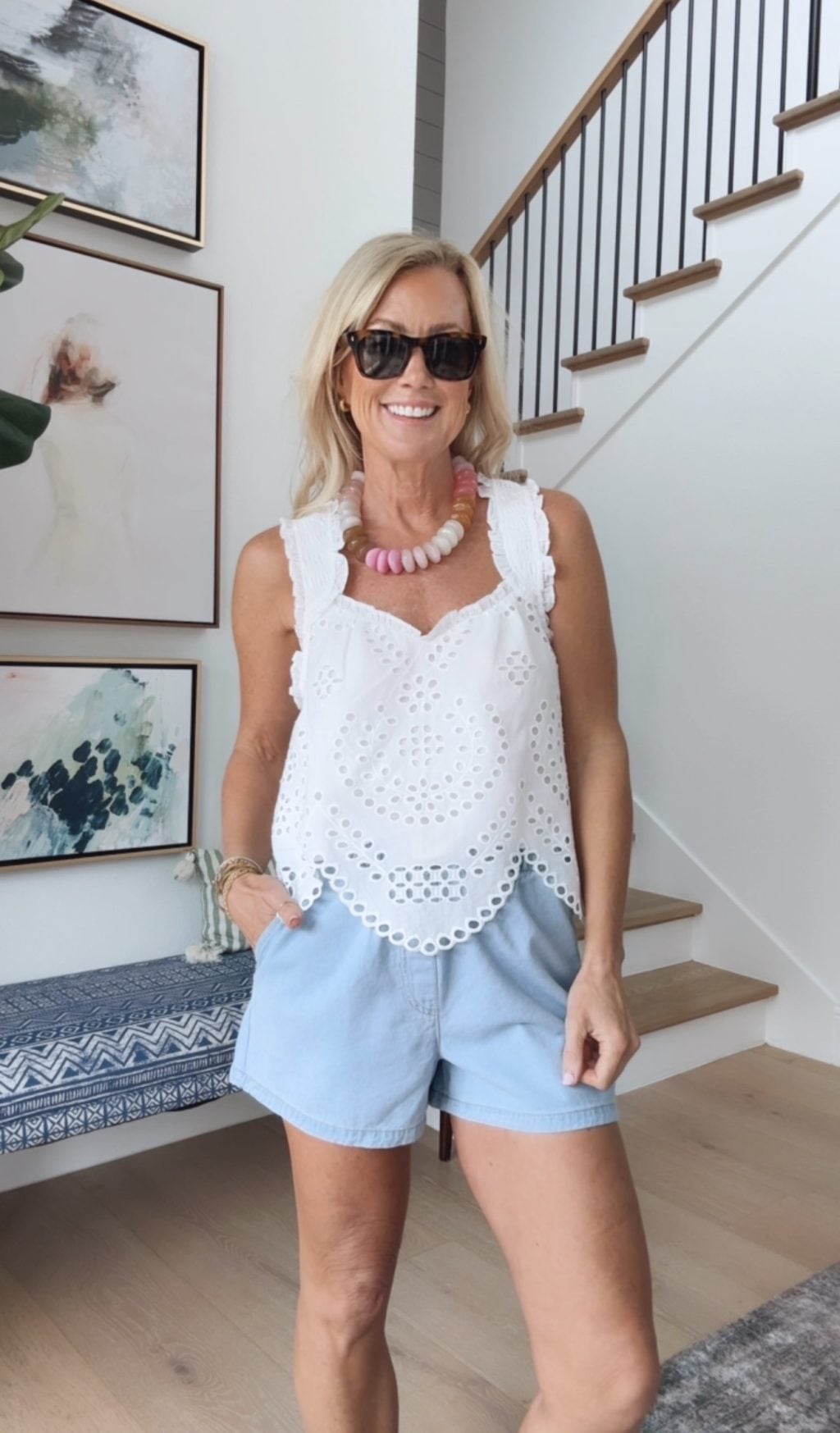 Top (XS) | Shorts (Small) | Earrings | Sunglasses | Bag | Sandals