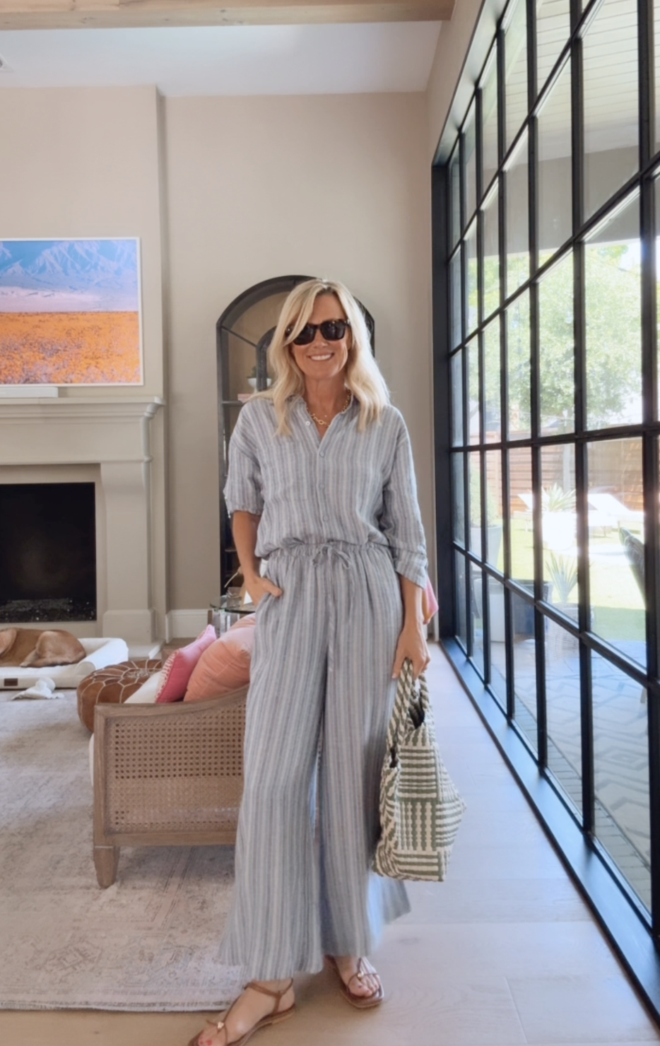 Top (XS) | Pants (Small) | Sunglasses | Sandals | Purse