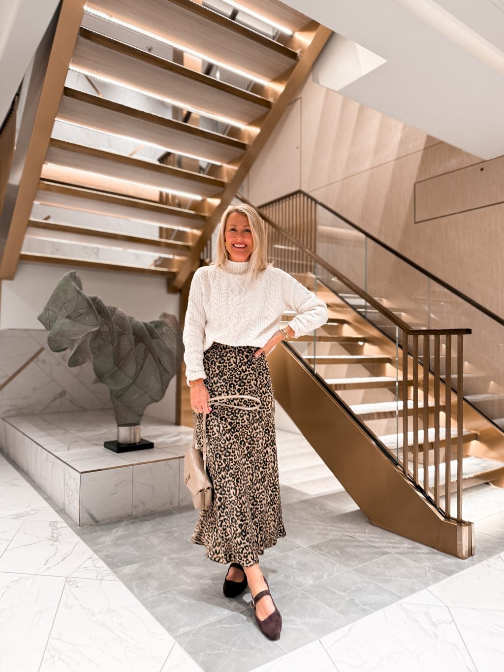 Cable Knit Sweater (Small) | Leopard Midi Skirt (Small) | Mary Jane Ballet Flats (Also HERE & HERE) | YSL Crossbody Bag | Shop All HERE