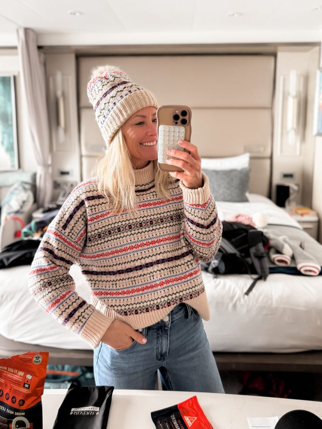 Fair Isle Sweater | Wide Leg Stretch Jeans | Fair Isle Beanie | Shop All HERE