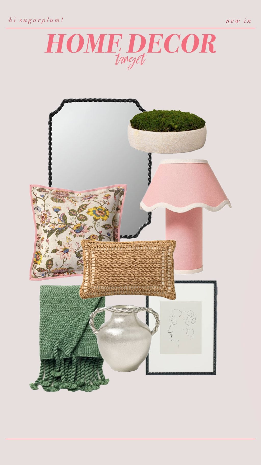 Mirror | Faux Moss Bowl | Floral Pillow | Scallop Lamp | Weave Pillow | Tassel Blanket | Silver Vase | Framed Art | Shop All HERE